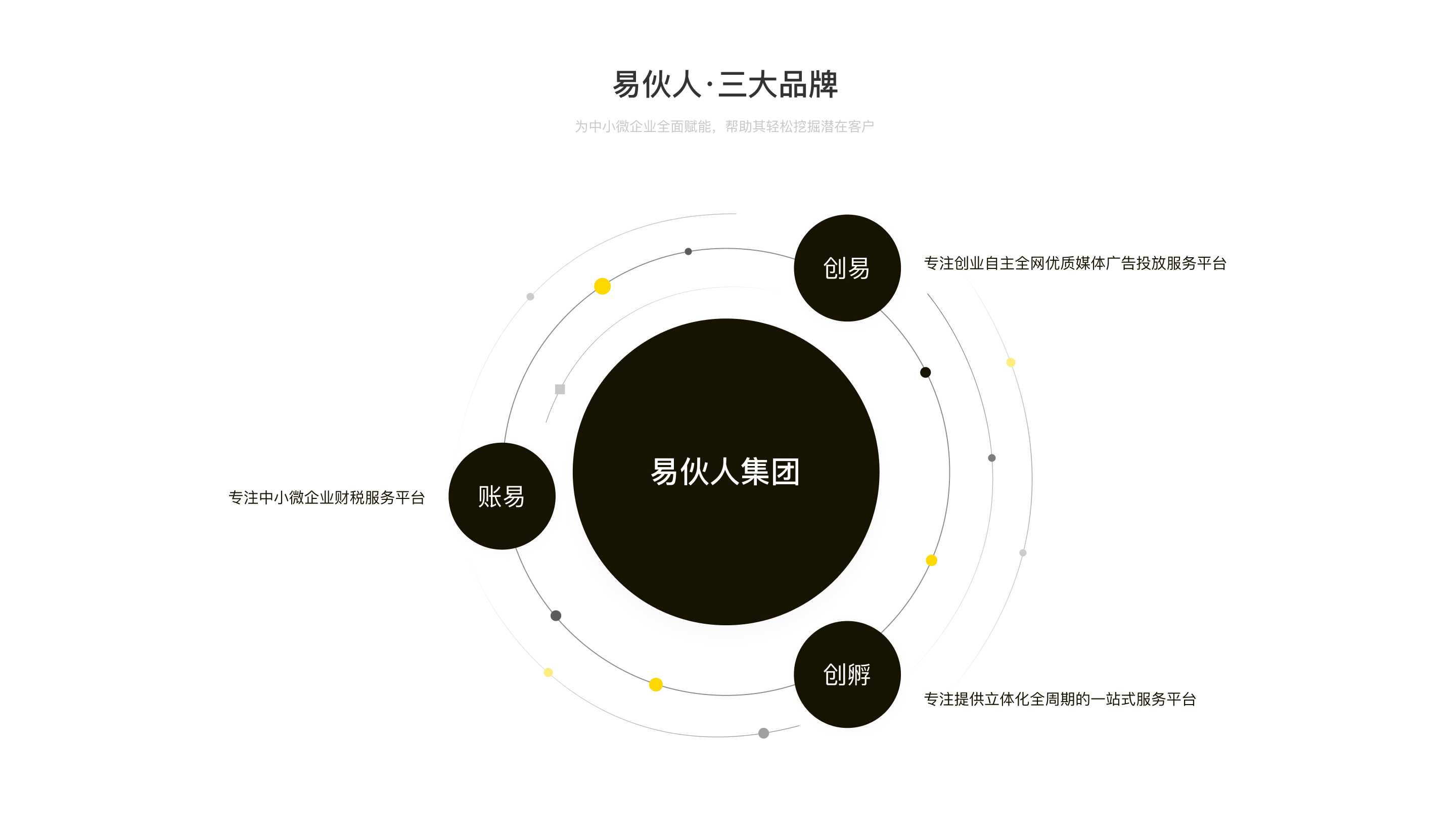 集團旗下三?業(yè)務品牌:創(chuàng)易、賬易、創(chuàng)孵,整體業(yè)務涵蓋互聯(lián)??告、?商財稅、企業(yè)云服務、IT研發(fā)、創(chuàng)業(yè)企服、項目投資等主流板塊,集團總部位于廣西南寧市,業(yè)務覆蓋地域桂、瓊、黔、陜、青、遼等地